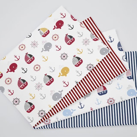 قماش قطني مطبوع بتصميم سفينة بحرية لملابس الأطفال الصغار * 72
