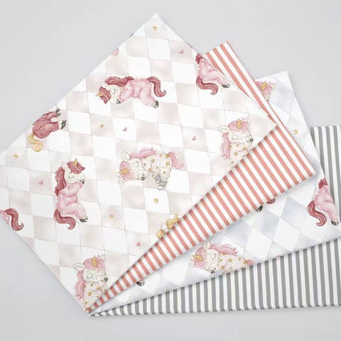Lindo diseño de unicornio impreso 100% tela de sarga de algodón para ropa de cama de bebé